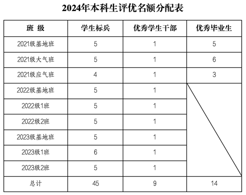 材料报送以班级为单位。请于12月17日18点前将电子版《2024年本科生评优项目推荐名单汇总表》(附件)邮件命名为“XX级 XX班评优材料”,发送至zhangqn2023@lzu.edu.cn。